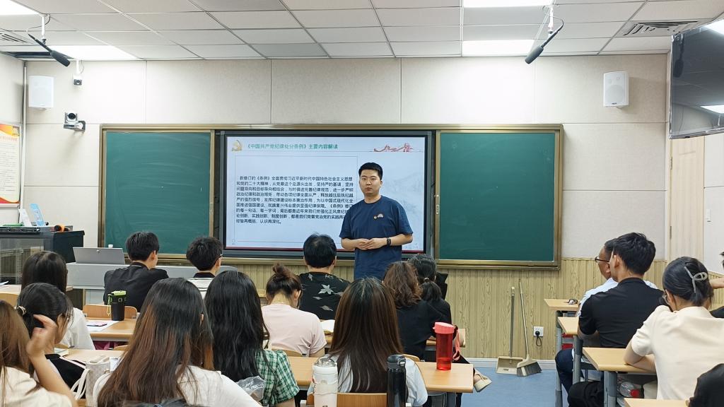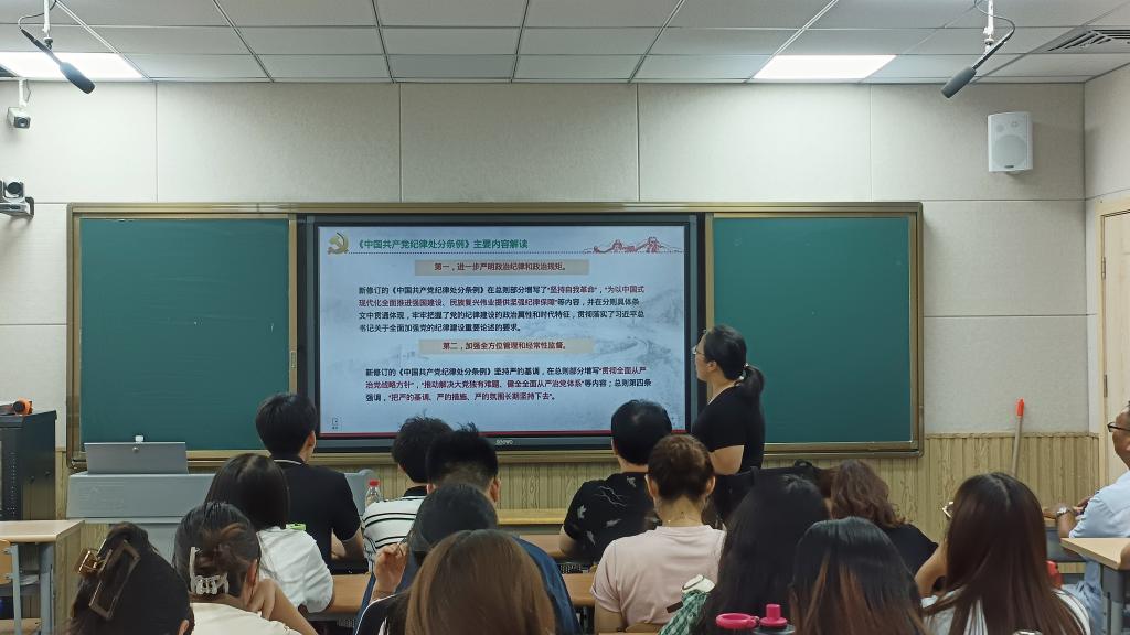 6月27日,按照学校党委关于开展党纪学习教育实施方案的统一部署,中文在线最新版天堂党委书记、各支部书记围绕深入学习《中国共产党纪律处分条例》,以集体微党课的形式组织师生党员集中学习党规党纪。