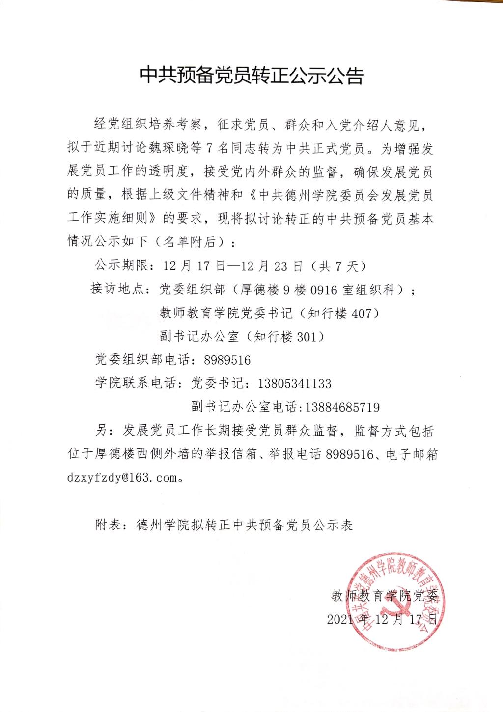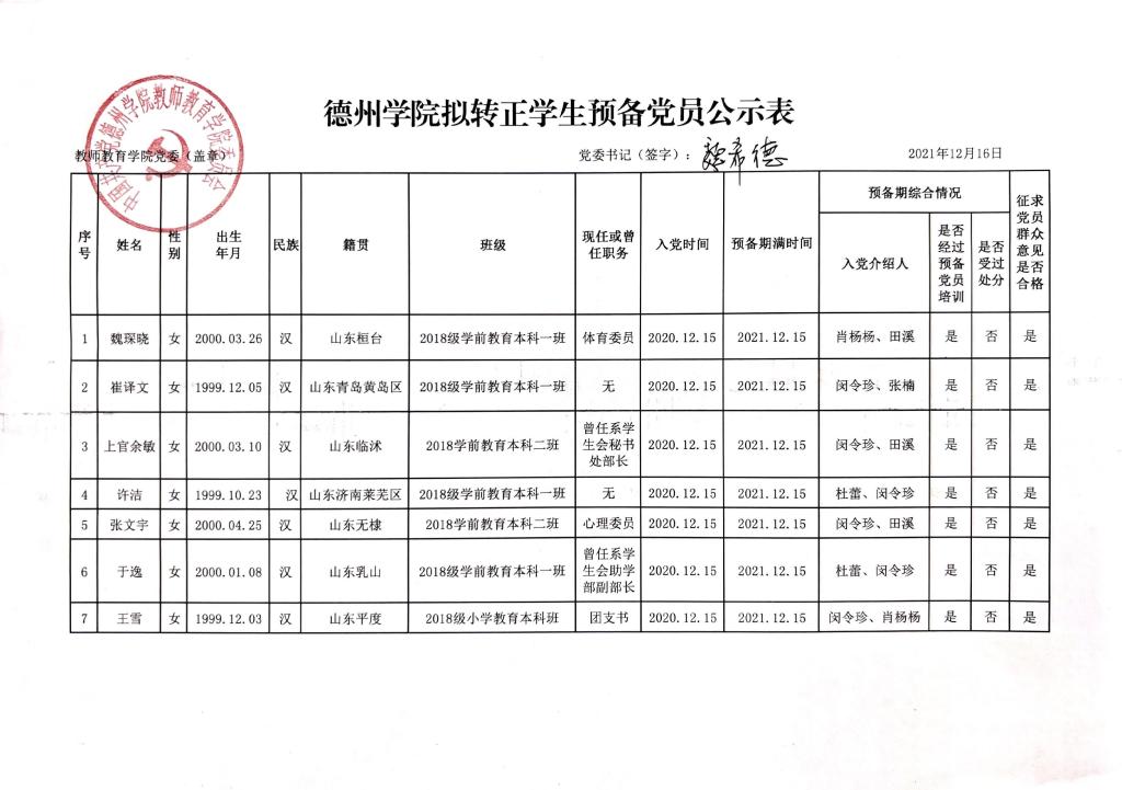 德州学院中文在线最新版天堂拟接收学生预备党员公示表