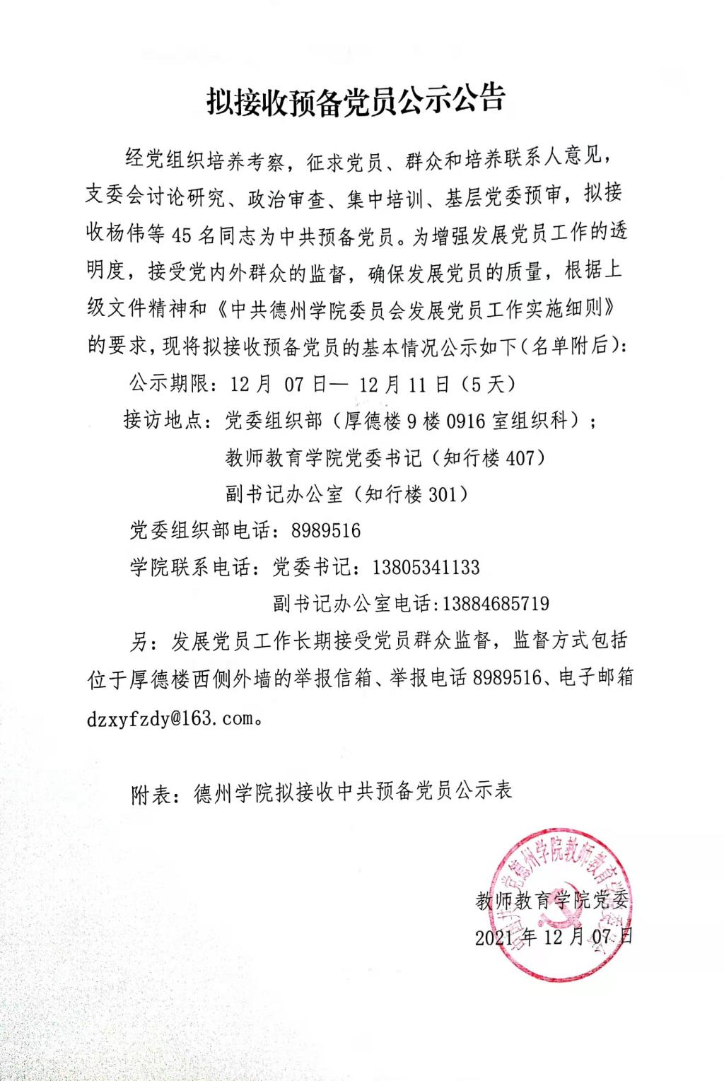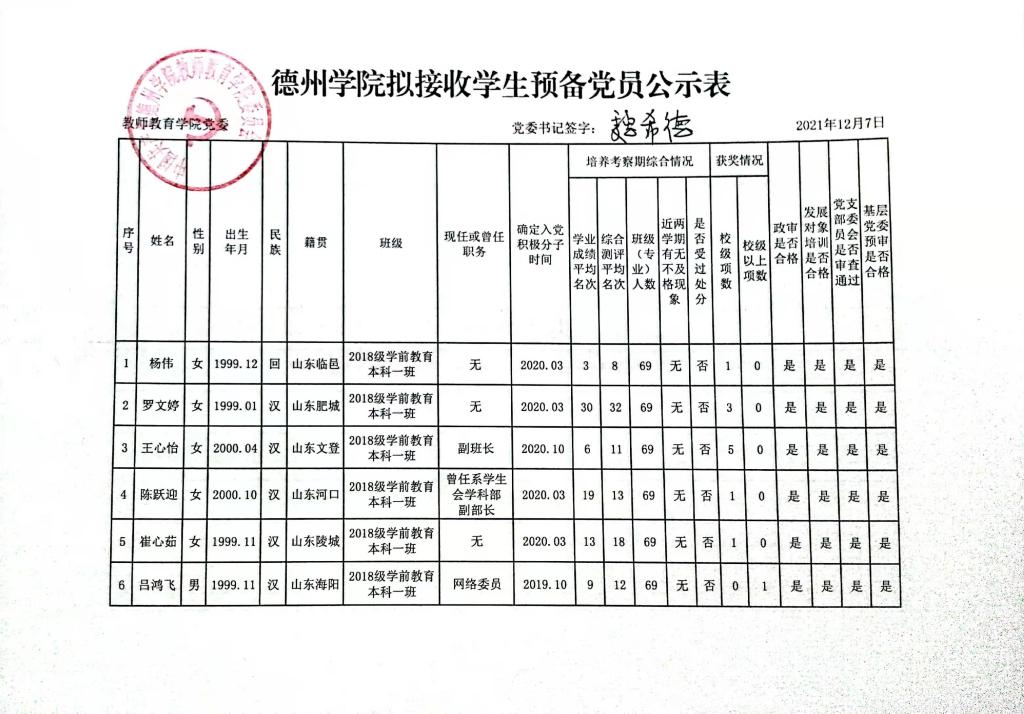 德州学院中文在线最新版天堂拟接收学生预备党员公示表