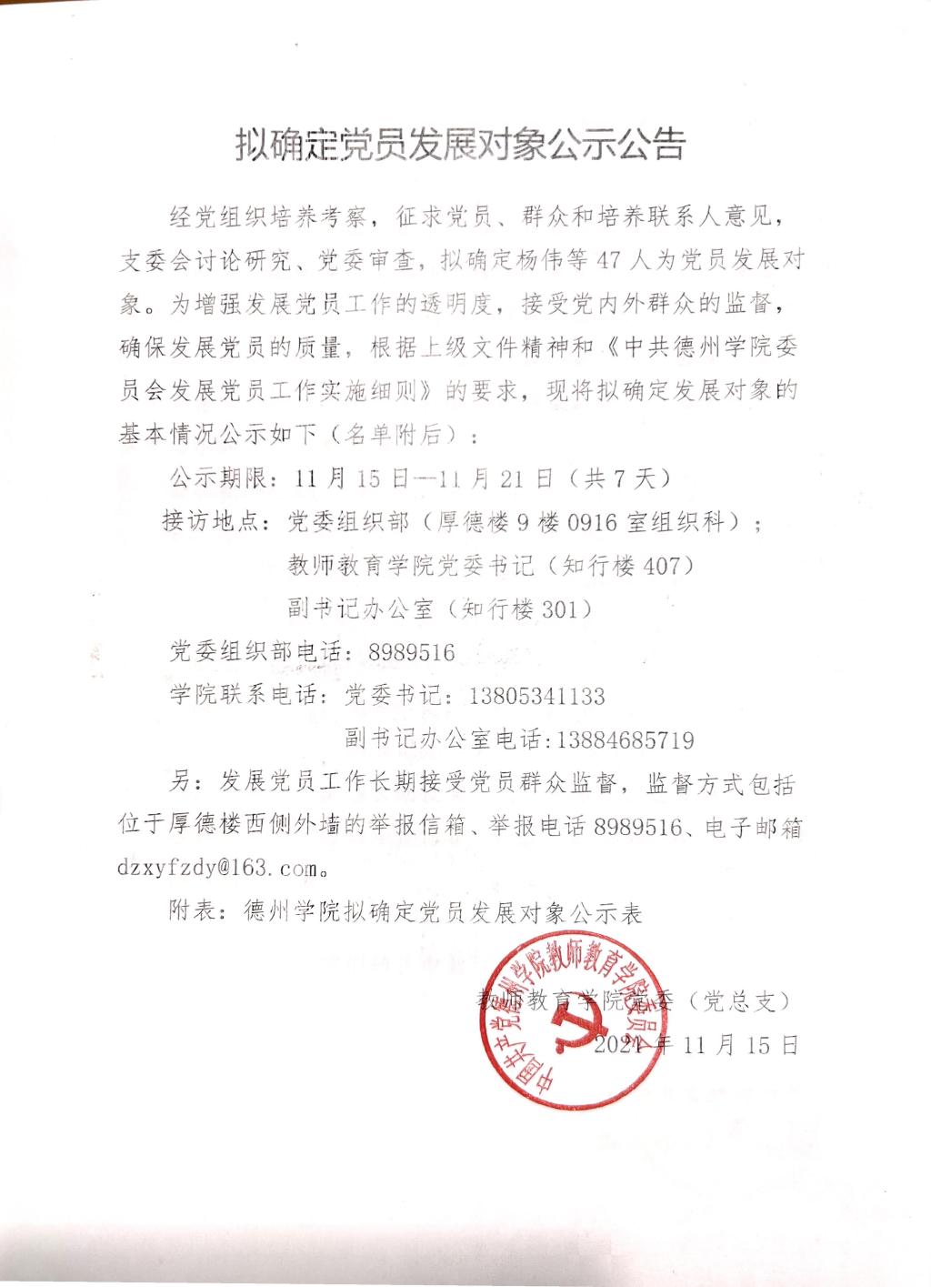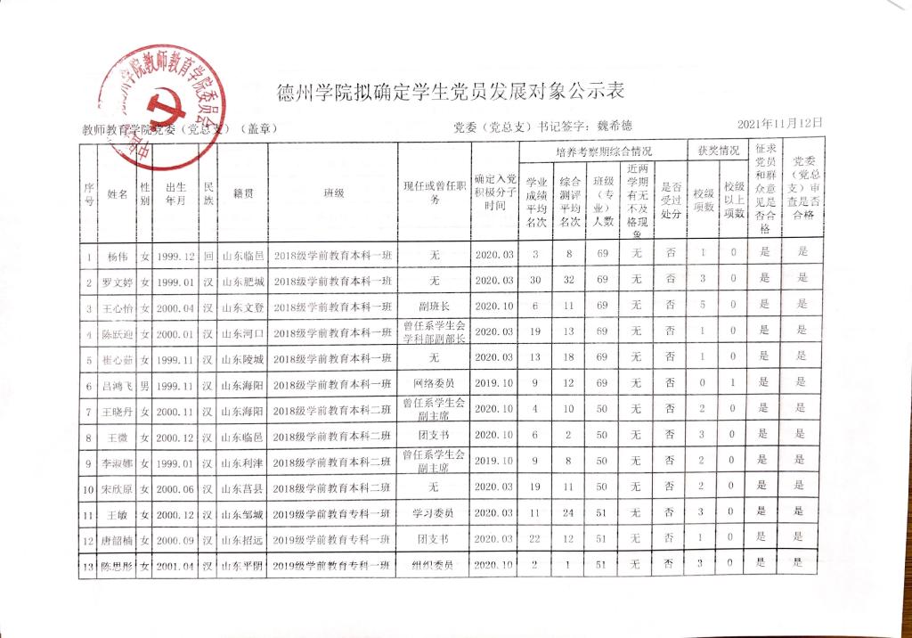 德州学院中文在线最新版天堂拟确定党员发展对象公示公告