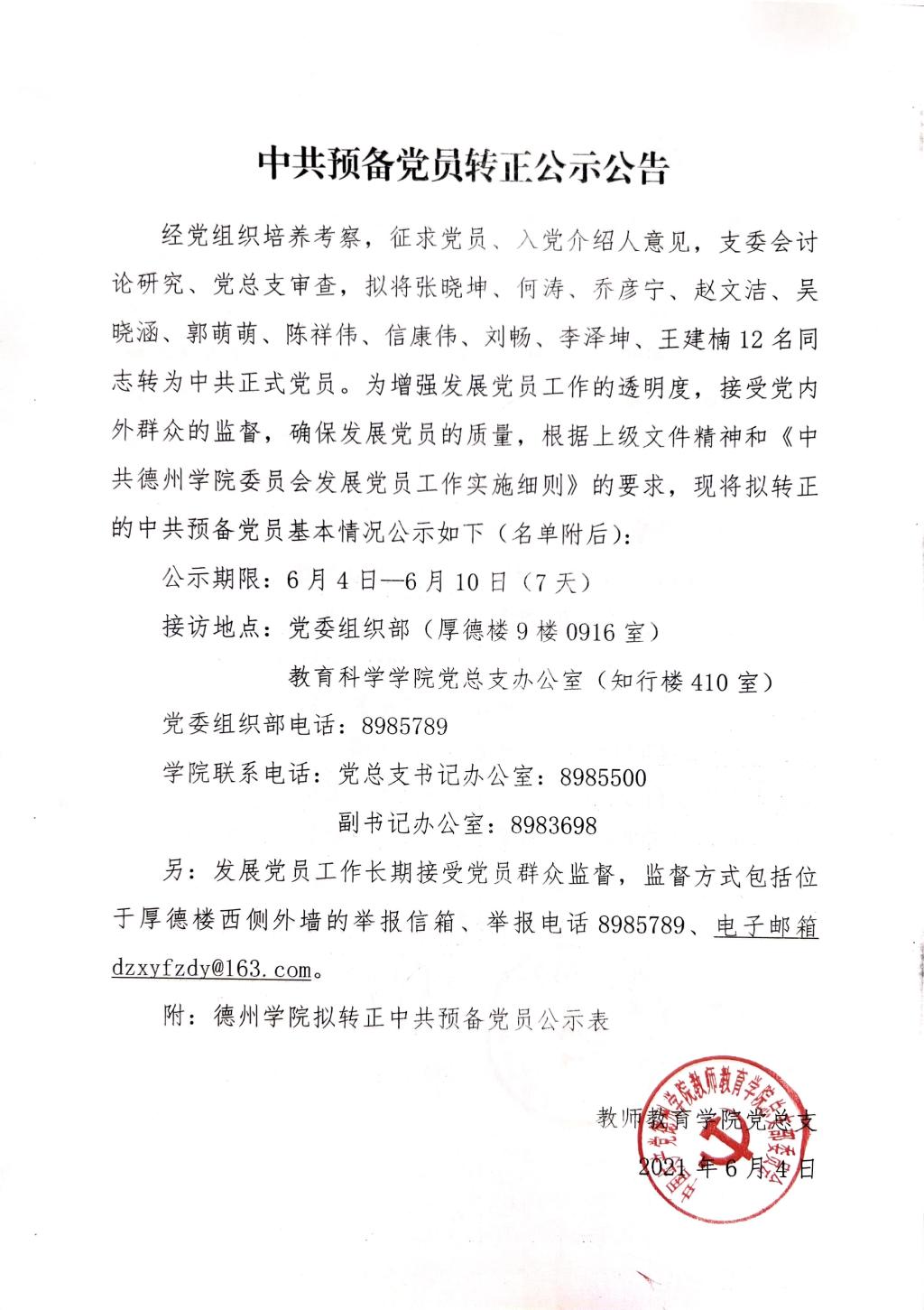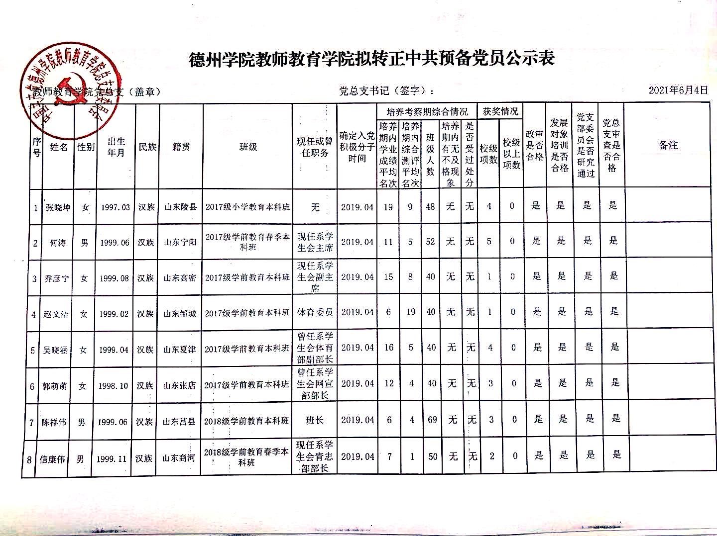 德州学院中文在线最新版天堂拟转正中共预备党员公示表