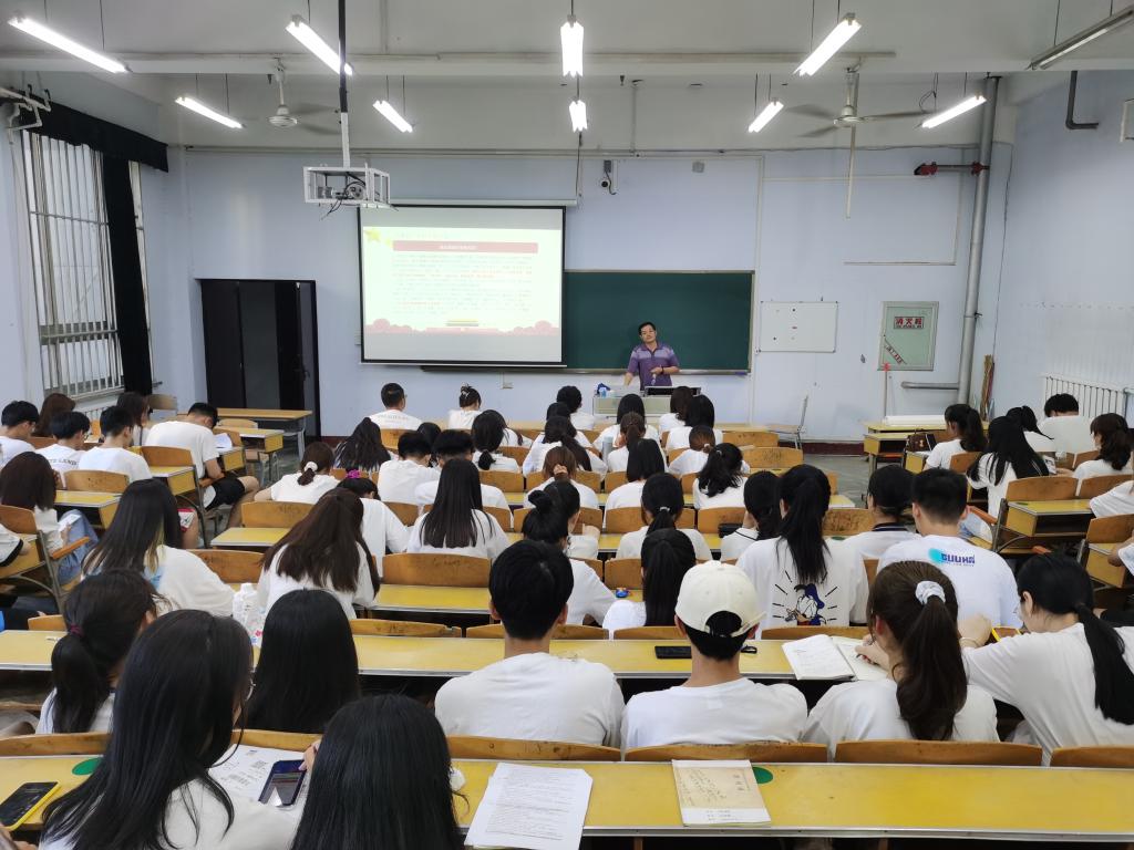 党课开始前,所有成员按照统一要求着装得体,有序入座。随后,魏书记向大家介绍此次党课内容并做详细解说。此次党课主题教育围绕党的一百年奋斗历史,划分为新民主主义革命向社会主义社会过渡时期、十年探索建设时期、文化大革命时期和改革开放四个历史时期,并将党的四大事件作为不同时期的代表性事件来重点讲述,在较短时间内让在座的同学们全面的了解党的百年历史。整个党课过程中,魏书记不时结合自己的党员亲身经验向大家介绍和讲述国家重大政策,使得同学们有了充分的理解。活动最后,魏书记总结此次党课主题教育成果,在座的学生干部和入党积极分子也表示收获颇丰。