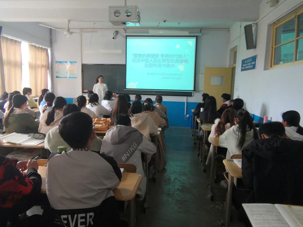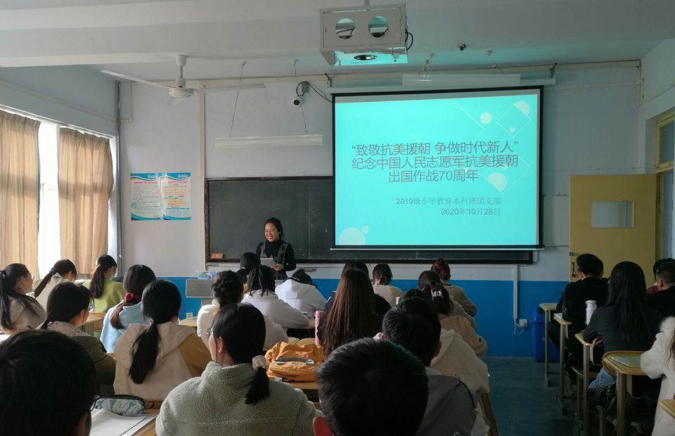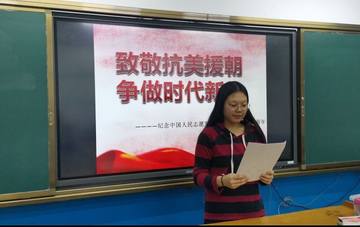 为在团员青年中深入宣传抗美援朝战争的光辉历程,开展爱国主义和革命英雄主义教育,大力弘扬伟大的抗美援朝精神和民族精神,致敬抗美援朝的革命先烈,增进当代青年爱国情怀。德州学院中文在线最新版天堂于11月2日在知行楼各团支部教室举行“致敬抗美援朝,争做时代新人”主题团日活动。