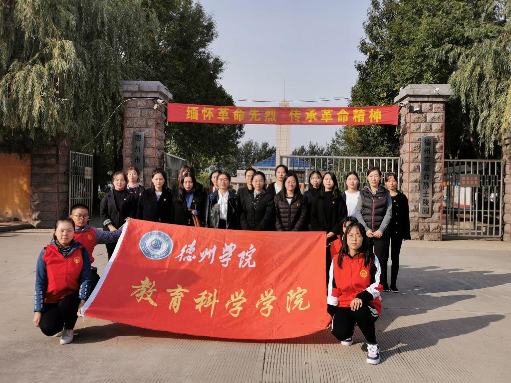 为加强党风廉政建设宣传教育,缅怀先烈的信仰,弘扬先烈的精神,继承先烈的遗志,用党的伟大革命精神激励教育科学学院学生党员不忘初心,牢记使命,砥砺前行,传承以爱国主义为核心的民族精神,践行社会主义核心价值观,贯彻落实习近平新时代中国特色社会主义思想,争做新时代“四有”青年。特此,德州学院教育科学学院于10月15日在德州市烈士陵园举行“祭扫陵园墓,缅怀先烈情”红色教育活动。