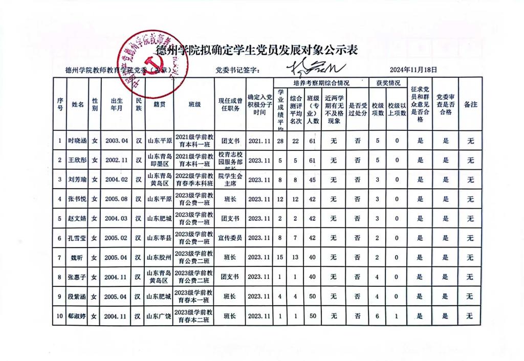 拟确定学生党员发展对象公示公告
