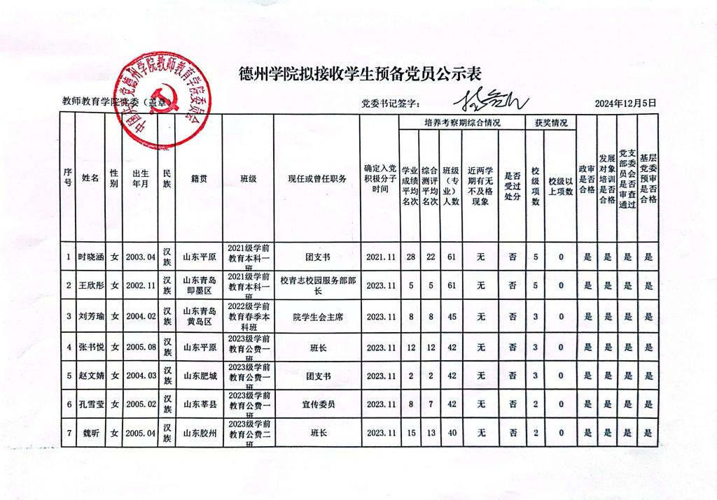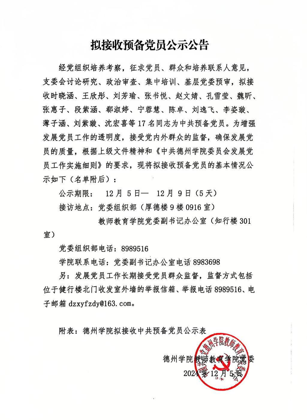 拟接收预备党员公示公告