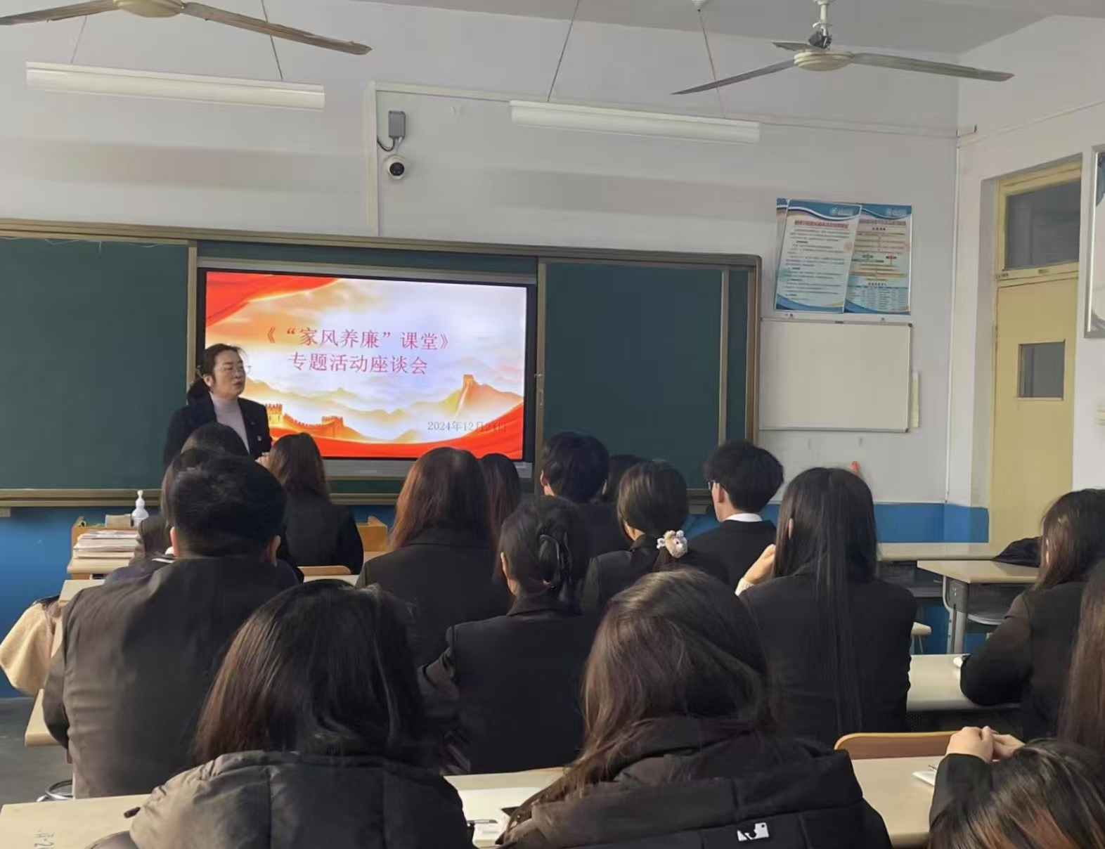 中文在线最新版天堂三个学生党支部在2024年12月24日下午的主题党日活动中集体组织召开了《“家风养廉”课堂》专题活动座谈会,学院党委副书记闫娜娜老师列席本次活动。