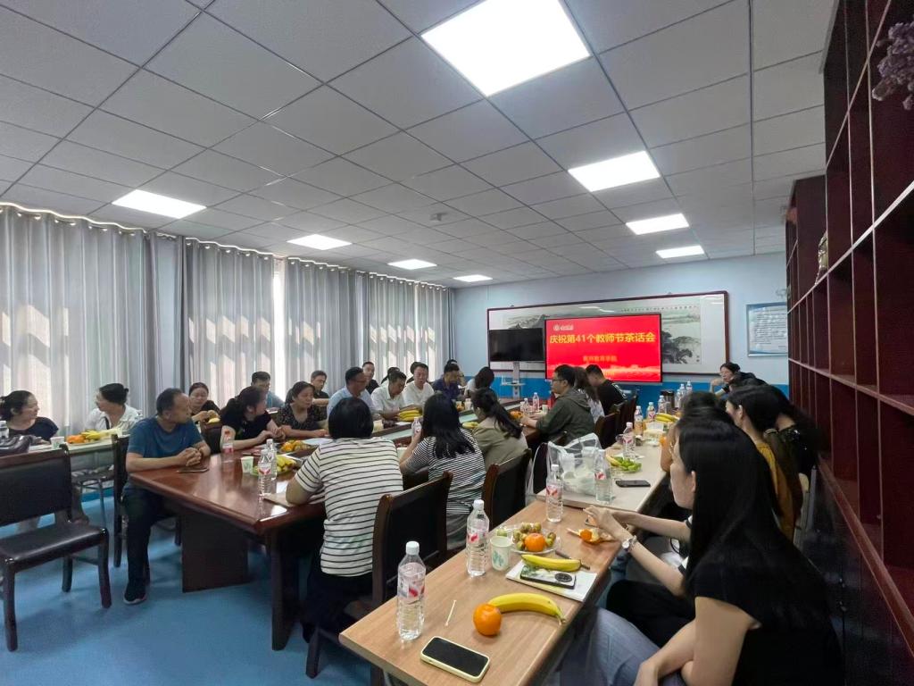 为热烈庆祝第41个教师节到来,9月10日下午,中文在线最新版天堂举行了教师节主题茶话会,学院全体教师欢聚一堂、共庆节日。