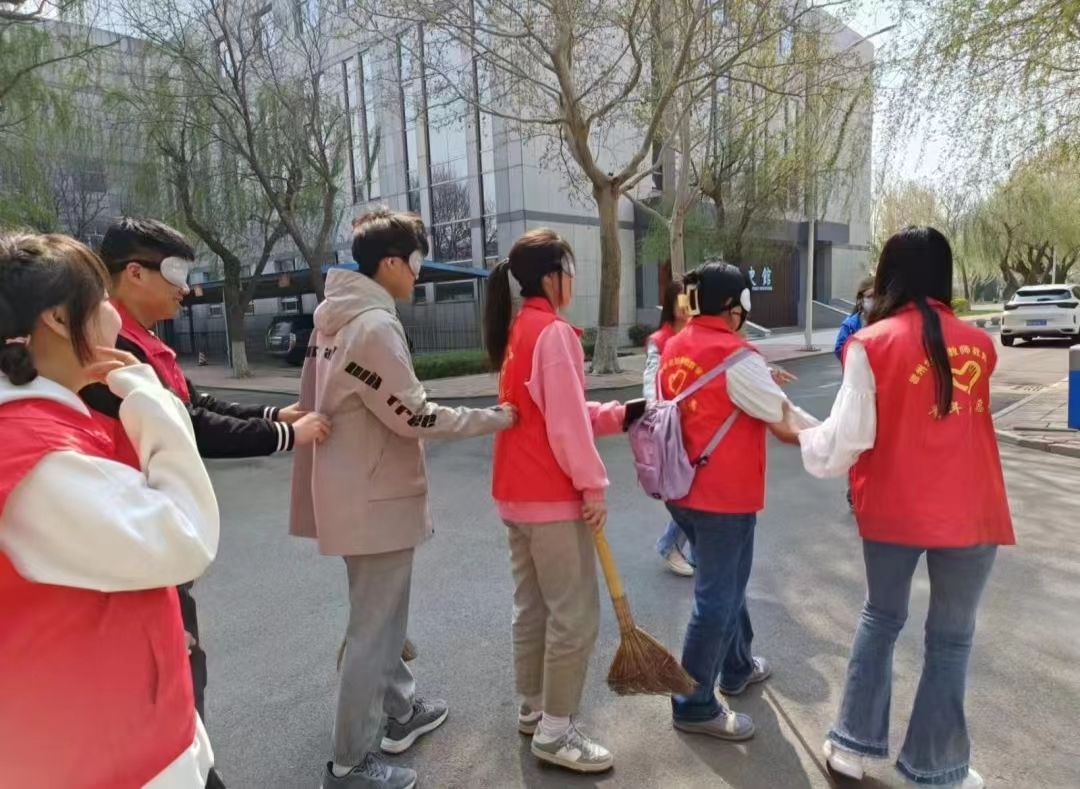 活动启动后,同学们在志愿者悉心布置的“盲行体验区”集合并完成签到。在体验环节,同学们纷纷佩戴眼罩,将双眼遮蔽。随后,在志愿者的悉心引导下,同学们排成一列,后者握住前者衣物,借助触觉与听觉探索前行。行进过程中,同学们需小心翼翼地感受地面的凹凸与质地,以判断路况。经过同学们的团结协作,他们成功穿越了阶梯、人行道等区域,深刻体会到了盲人在生活中所面临的困扰与挑战。活动结束后,同学们齐聚一堂,共同探讨感悟,并分享了此次活动的心得体会