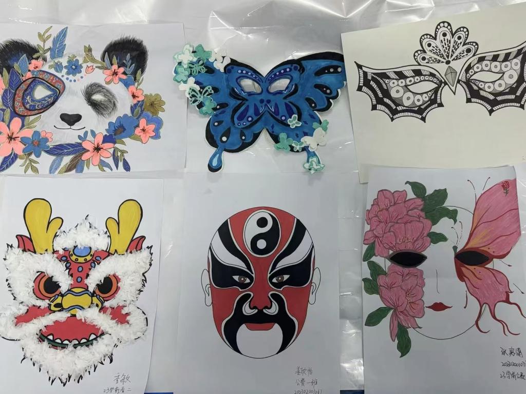 活动开始,同学们以中华优秀传统文化为灵感,纷纷拿起画笔和颜料,开始投入到面具的创作中。从起稿到上色,同学们用心描绘着每一笔,让画面充满生机。有的同学设计出的面具独具古韵,具有浓郁的民族特色;有的同学将传统与现代元素巧妙地融入面具设计,创作出别具一格的作品;还有的同学将古典诗文绘入面具,展现与众不同的文人风采。同学们将对传统文化的喜爱之情寄托在面具上,用流畅的笔触和鲜艳的色彩表达着对传统文化的独特理解,充分展现了同学们独特的创造力和精湛的技术。经过反复的修改和上色,同学们的作品终于完成,每一张面具都充满了艺术的气息和浓厚的文化底蕴。最后,活动还设置了互动环节,让同学们相互交换心仪的面具,这不仅促进了同学们之间的交流与沟通,也促进了不同文化背景下的创意碰撞与融合。