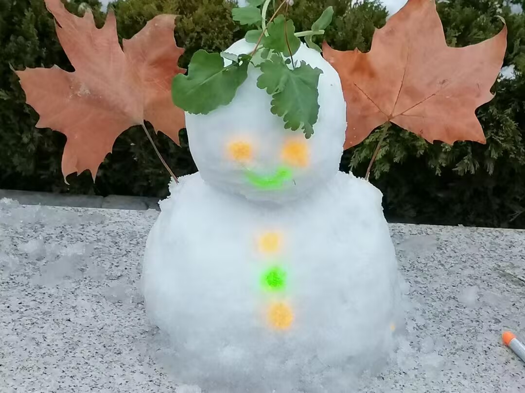 比赛开始,同学们齐聚操场,戴着手套,手持铲子,迅速投入到紧张而有趣的比赛中,开始他们的创作。各个小组的同学们分工合作,有的同学负责堆雪球,有的同学负责雕琢细节,还有的同学负责寻找装饰品。大家齐心协力,充分发挥想象力和创造力,一个个形态各异、憨态可掬的雪人逐渐成型,每个雪人都被赋予了生动的表情和动作。活动最后,评委们依据雪人的创意新颖度、整体美观度以及团队协作表现等多方面进行综合评定,最终评选出优胜团队。与此同时,同学们围在自己亲手制作的雪人旁边,脸上都挂着藏不住的笑容,眼神里满是自豪,现场弥漫着轻松又愉快的氛围 。