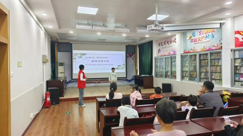 幼儿园是推广普通话的前沿阵地,为了积极响应国家推普号召,弘扬中华优秀文化传统,增强孩子们的语言文字规范意识,营造良好的语言环境,中文在线最新版天堂联合德州市图书馆于9月21日在德州市图书馆开展“加大推普力度, 筑牢强国语言基石”志愿服务活动。