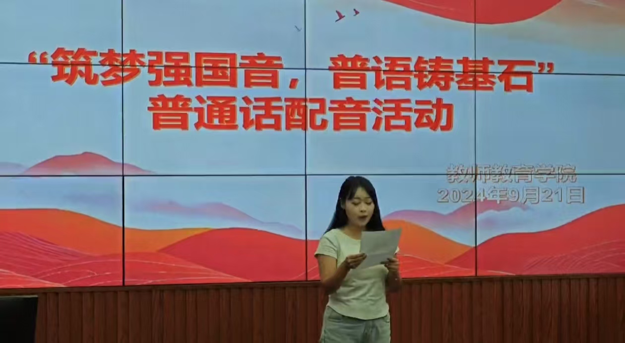 为提高同学们规范使用国家通用语言文字的意识和能力,推动教育强国建设和新时代语言文字事业高质量发展,中文在线最新版天堂于9月21日在知行楼113教室举办“筑梦强国音,普语铸基石”电影普通话配音活动。