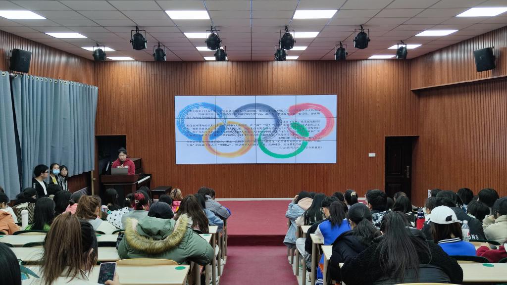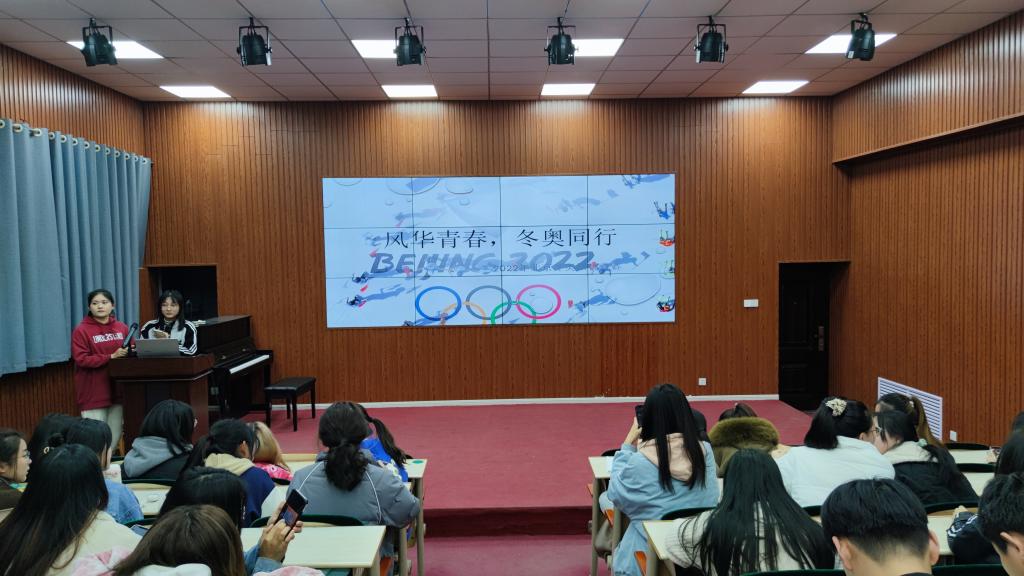 活动中,主持人播放冬奥会的视频,调动同学们对于活动的兴趣。主持人通过讲解冬奥会过程中发生的志愿服务小故事,让同学们了解冬奥会期间的志愿服务。知识竞赛阶段,主持人讲解竞赛规则,按小组进行抢答,对于成绩并列的两组进行附加题竞赛。最后,主持人播放冬奥会的主题曲《一起向未来》,回顾冬奥会的精彩瞬间,激发同学们的爱国热情。