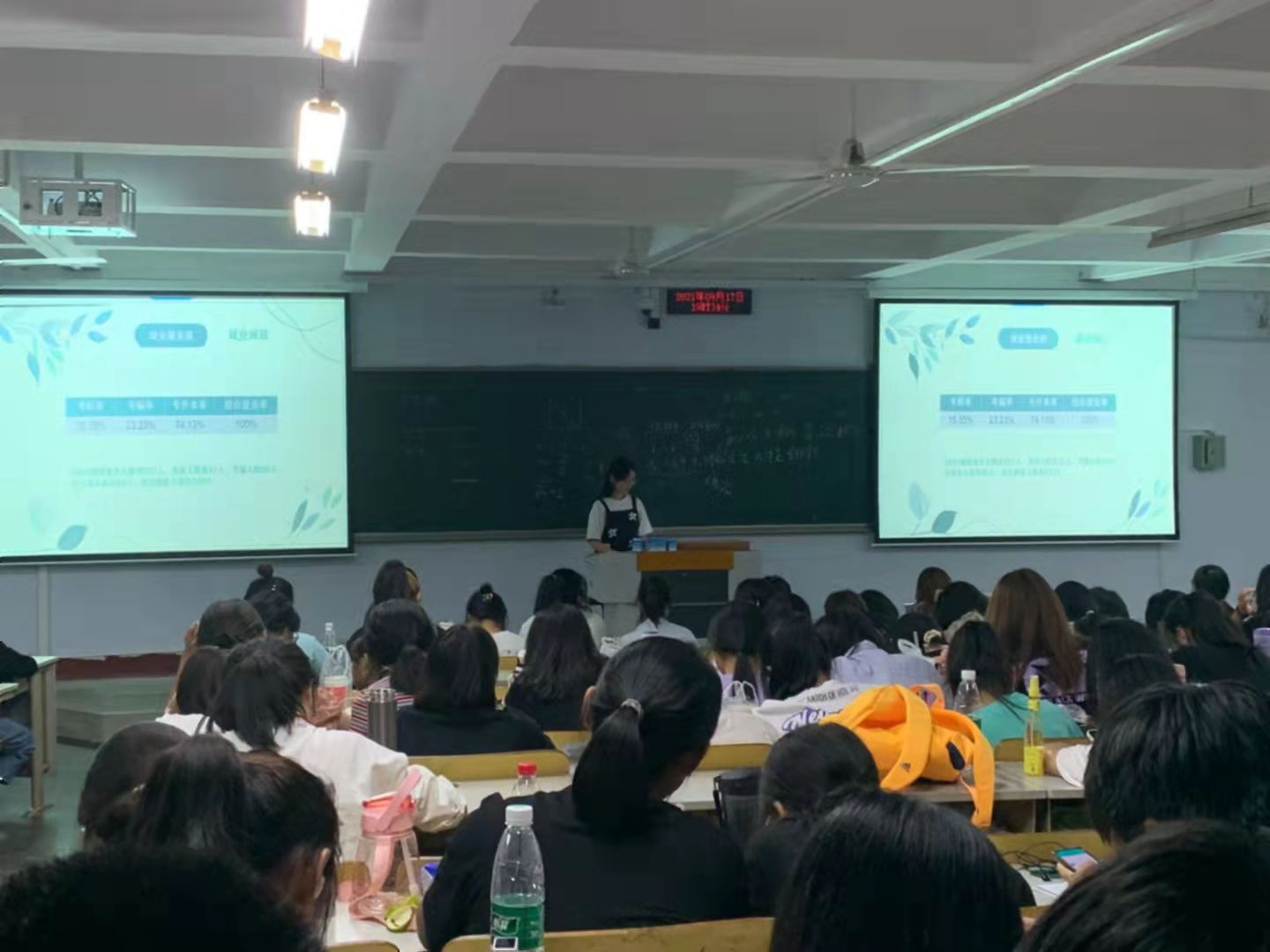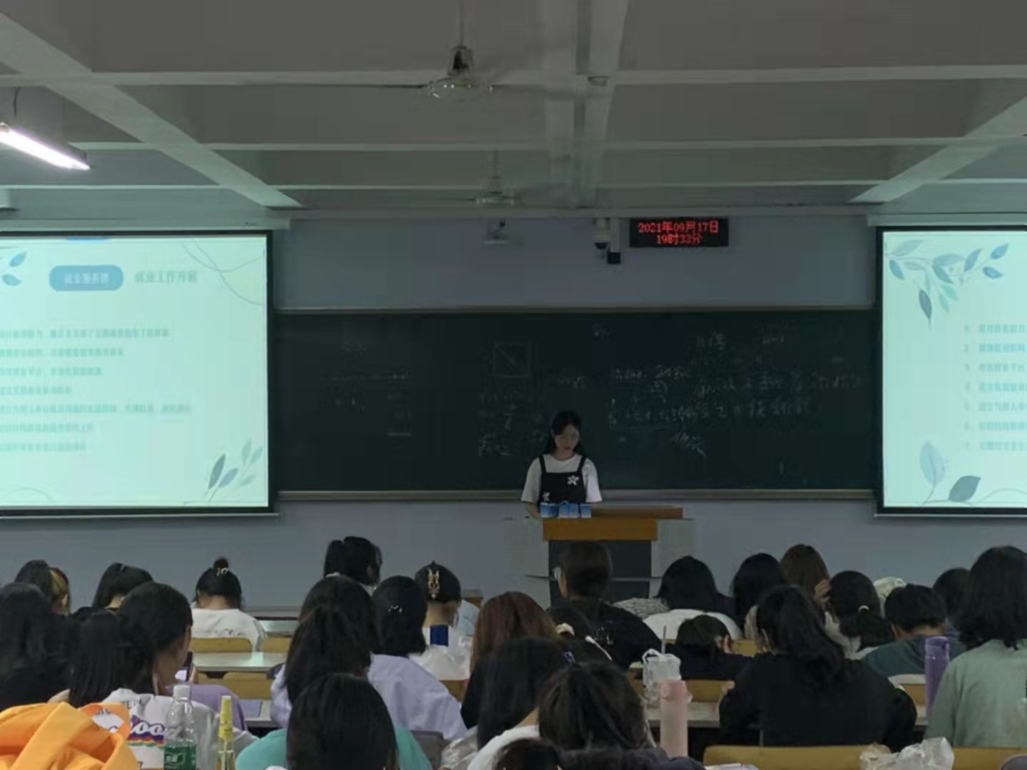 活动伊始,就业服务部成员围绕“职业生涯规划的作用及其现状”、“什么样的工作算是好工作”、“职业生涯规划的基本步骤”、“我该怎么做”四个方面进行了具体讲解。随后围绕着就业工作开展、就业成效和奖学金助学金的相关内容展开讲解。本次讲座的开展,为2021级新生提供了就业指南,为即将开启的大学生活指点迷津。使同学们明确了努力的方向,增强了学业意识。