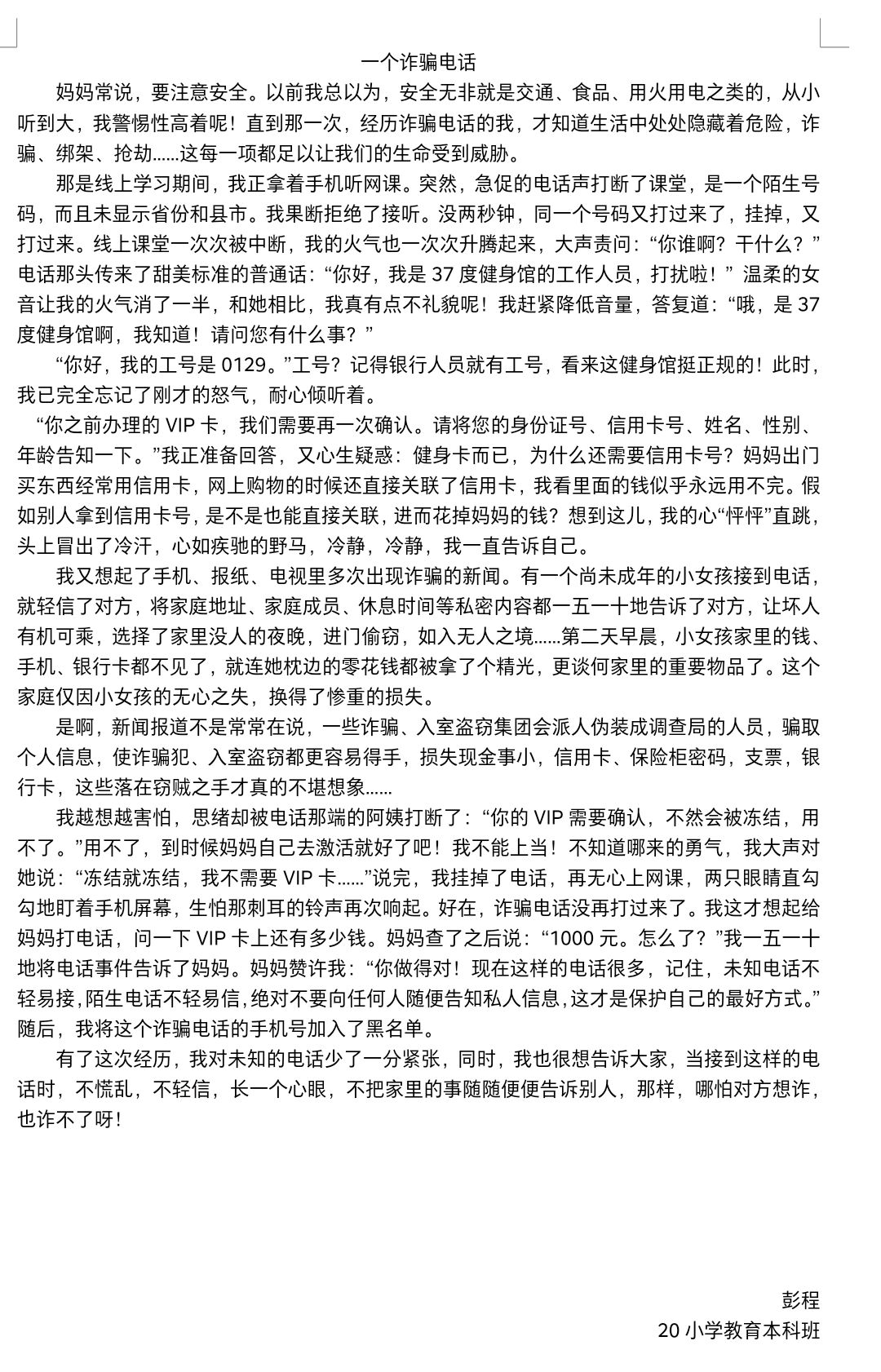 此次征文比赛活动的成功举办,不仅让同学们真切地感受到了校园诈骗的危险性,更为校园诈骗的防范意识、降低校园诈骗发生率奠定了有效基础。