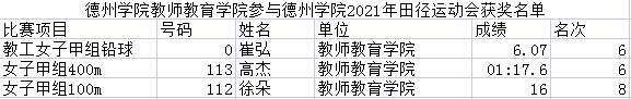 德州学院中文在线最新版天堂参与德州学院2021年田径运动会获奖名单
