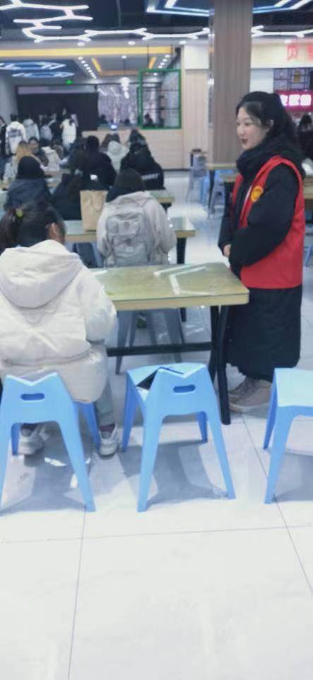 活动伊始,由相关负责人员讲解本次活动的注意事项和要求,随后,由各个活动负责人带领自己的成员于午餐、晚餐时间进行餐厅巡逻和督导。在值班过程中,活动成员规范用餐人员自觉排队,餐盘回收等行为;最后,活动负责人对成员进行点评,指出此次活动的优点与不足。