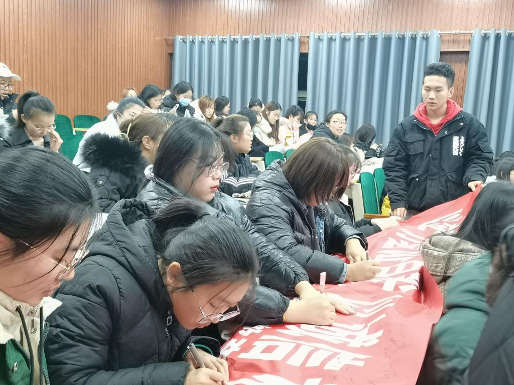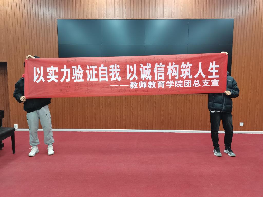 为营造诚信考试的良好氛围,鼓励大家积极复习,诚信考试。德州学院中文在线最新版天堂于12月17日在知行楼113教室举办诚信考试横幅签字活动。