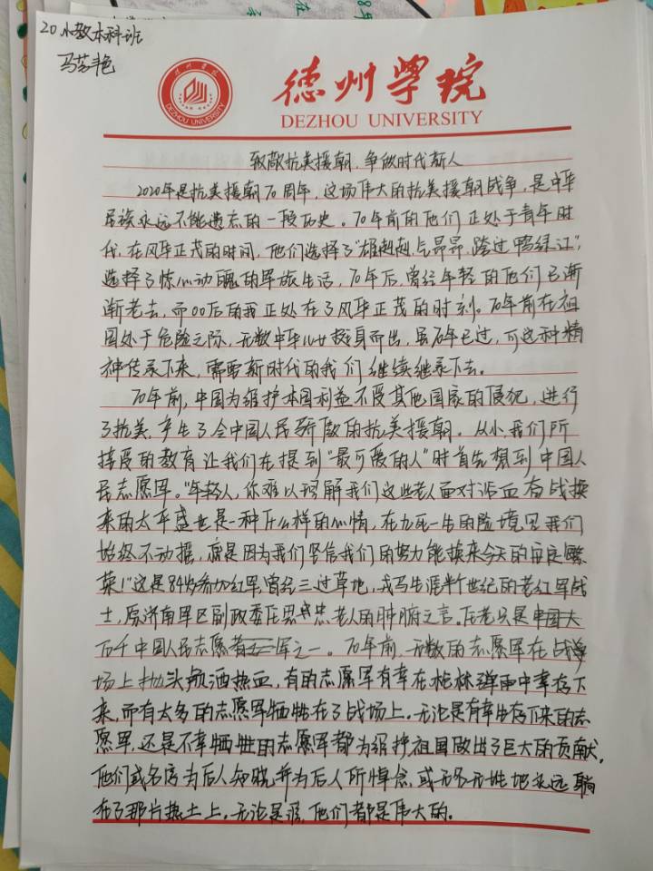为增强学生的责任感和使命感,弘扬革命主义精神,提高学生参加志愿服务活动的激情,德州学院中文在线最新版天堂于11月1日晚上在知行楼成功举办“致敬抗美援朝,争做时代新人”主题征文活动。