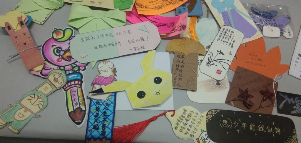 本次活动,同学们积极参加,热情高涨,想法新颖。大家利用课余时间搜集各种材料,发挥各自创意进行书签制作,作品个性鲜明,富有创意。作品收集后,评委对作品进行评分并奖励。