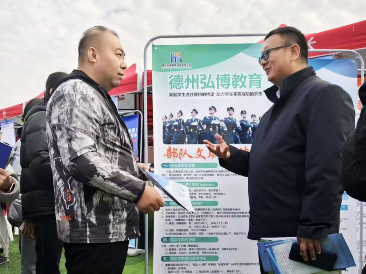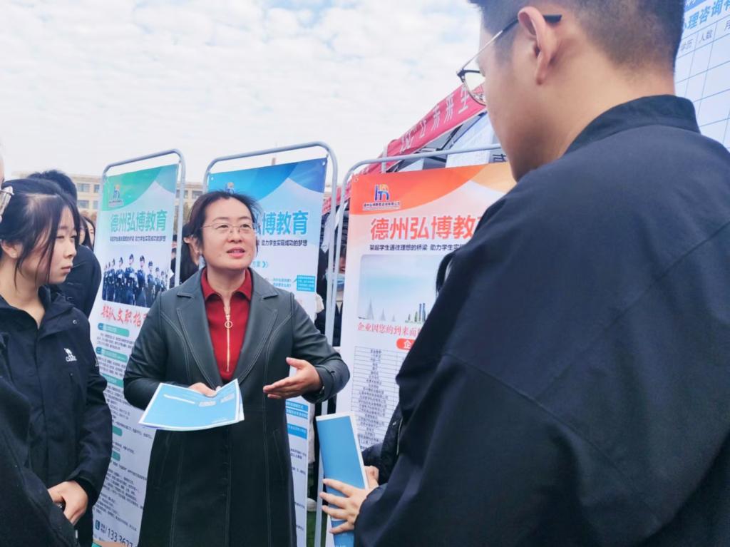 11月9日上午,“职引未来,就选山东”德州学院2025届毕业生校园招聘会暨实习双选会在学校田径场举行。此次招聘会共有271家知名企业参加,吸引了我院554名学生参加。学院党委书记杨爱民、副书记闫娜娜、全体辅导员、毕业班班主任到招聘会现场调研,2025届毕业生积极应聘,部分低年级学生到场观摩。