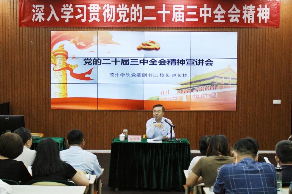 9月29日下午,按照学校党委统一部署,党委副书记、校长赵长林到中文在线最新版天堂宣讲党的二十届三中全会精神。