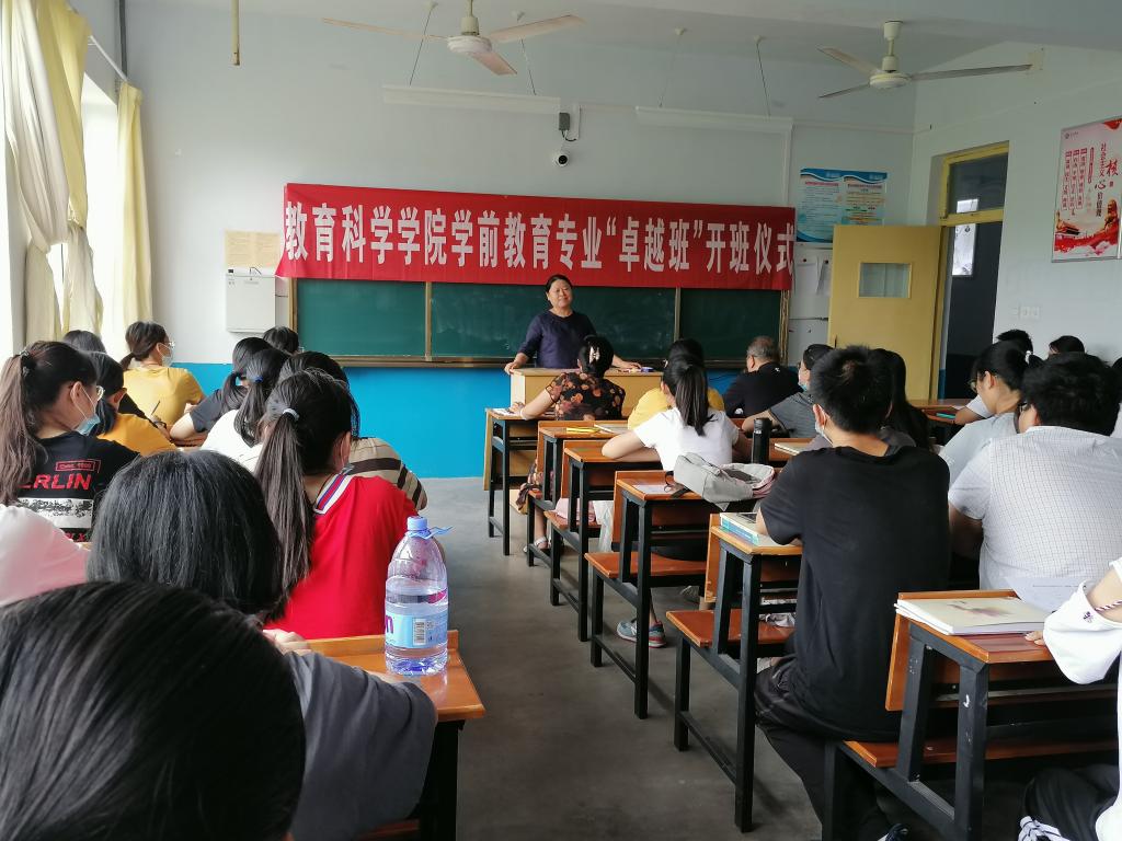 根据《国家中长期教育改革和发展规划纲要(2010-2020 年)》和《教育部关于实施卓越教师培养计划的意见》的精神,为推进幼儿教师教育专业人才培养模式改革,教育科学学院学前教育专业被德州学院设为“卓越班”建设项目。前教育专业“卓越班”开班仪式于2020年6月12日上午9:00在知行楼3楼304教室举办。“卓越班”以教科院“四段式”教师养成工程为依托,以小班化教学为特色,集中教科院优质师资力量,高标准严要求,精心打造教科院教学品牌。