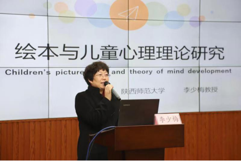 李少梅教授作题为绘本与儿童心理研究的学术报告,报告主要围绕绘本与心理理论、绘本鹰架儿童心理理论的发展、儿童绘本分析、心理理论与学前儿童语言领域核心经验四部分展开。