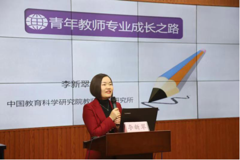 李新翠主任作题为青年教师专业成长之路的学术报告,报告主要围绕全面深化新时代教师队伍建设,改革努力造就党和人民满意的高素质专业化创新型教师队伍,要坚定内驱力、学习力、研究力、反思力,树立好“为自己工作”的理念,从做“四人”——做目标的明白人、做学习的带头人、做研究的热心人、做反思的践行人等几个方面开展实践工作。