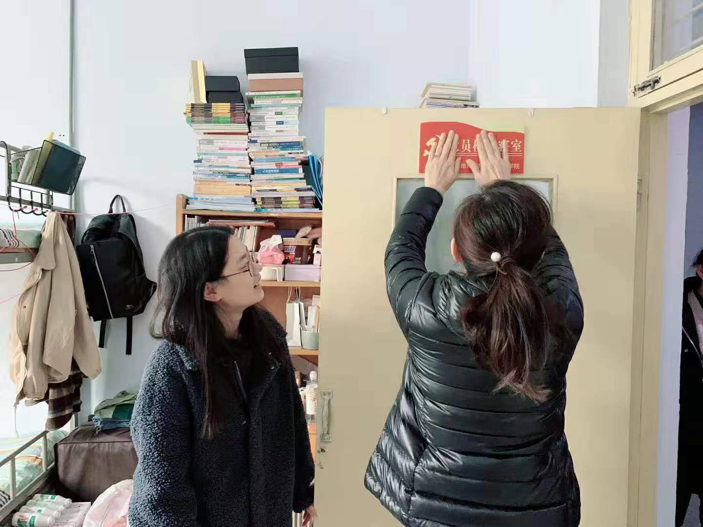 为了响应“不忘初心、牢记使命”主题教育的号召,促进校区党建工作,发挥学生党员在学生中的先锋带头作用,为全体同学树立良好的榜样。教育科学学院于11月21日在21号公寓的党员宿舍举办了“党在我心中,代代有传承”党员模范宿舍挂牌仪式。