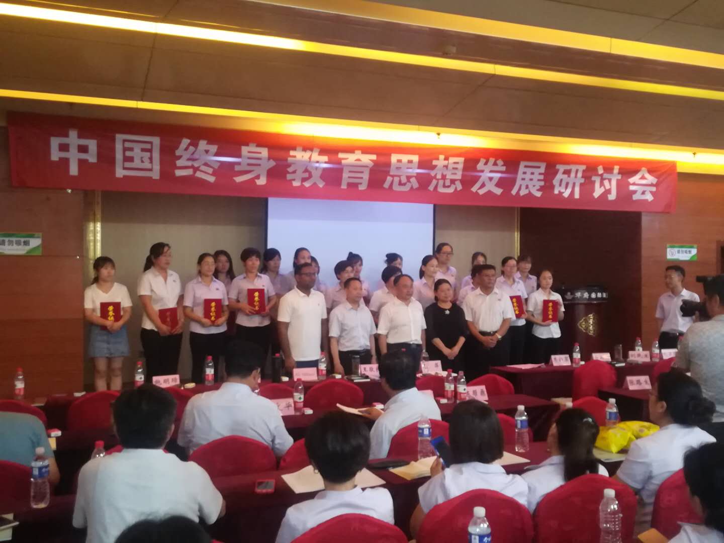 赵胜村与王敬良共同为终身教育课题研究基地揭牌。