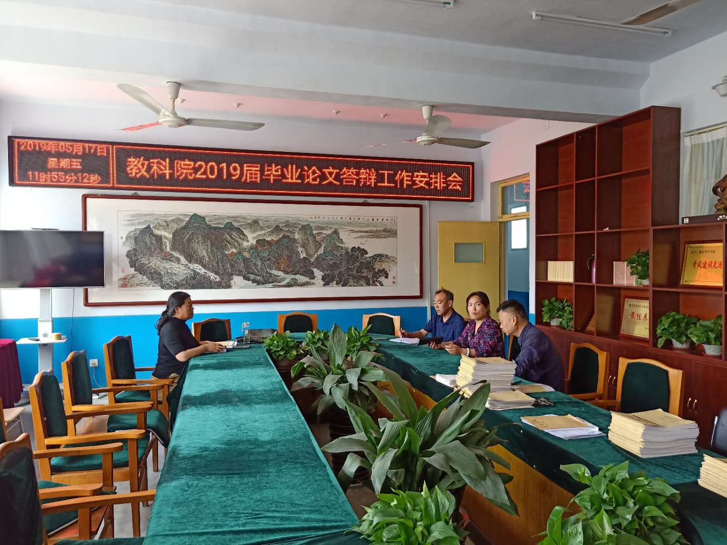 院长王萍主持会议。分管论文工作的领导和老师参加会议。