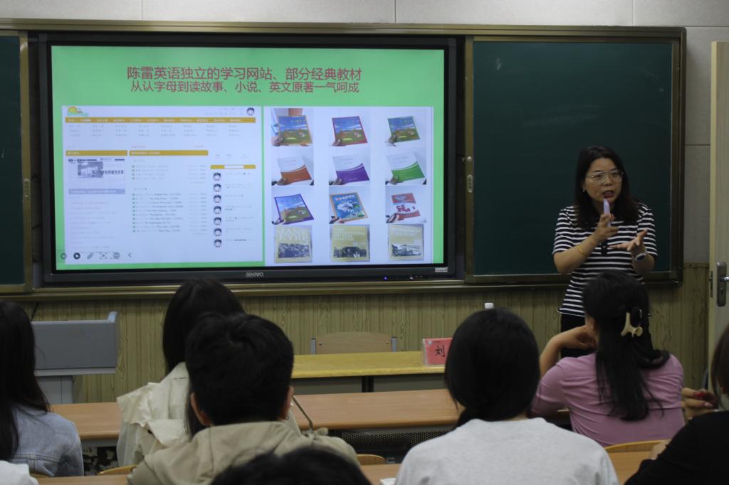 活动伊始,德州英汉双语学校常务副校长刘静作为优秀校友陈雷校长的代表,以《陈雷英语教学法:学英语的革命性突破!》为题,系统阐述了这一创新教学法的核心理念与实践路径。她向同学们展示了陈雷独特的文学教学法成效,并让同学们理解了该教学法与传统的交际教学法和翻译教学法的区别和优势,引发了同学们对陈雷教学方式浓厚的兴趣,刘校长鼓励大家夯实专业基础,开拓视野,敢于创新,为未来职业发展筑牢根基。